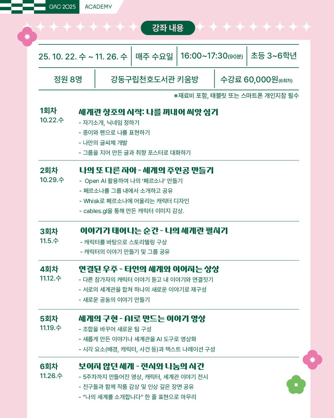 2025-10-22 09:00 ~ 2025-11-26 18:00 | 매주 수요일