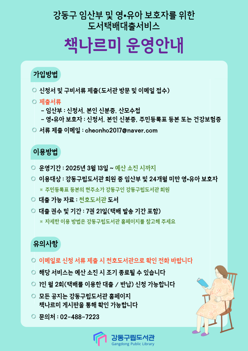 2025년 임산부 및 영•유아 보호자를 위한 택배대출서비스 '책나르미' 운영 안내