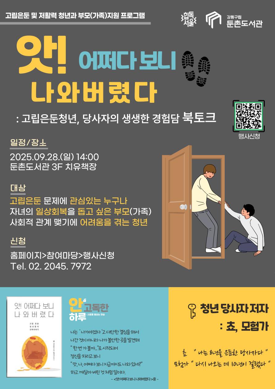 고립은둔당사자 2분이 함께 쓰신 책에 대한 북토크가 진행됩니다.