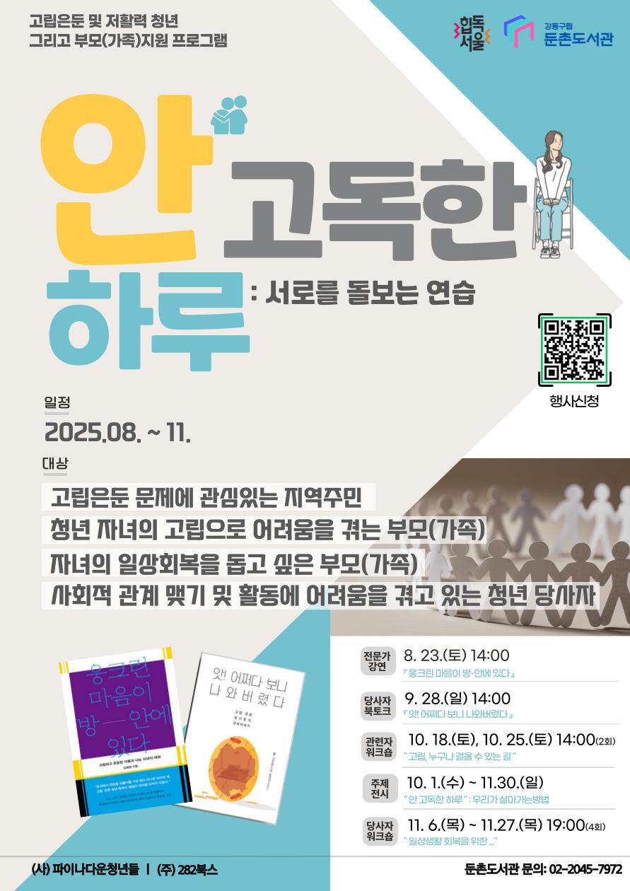 고립은둔 및 저활력 청년 그리고 부모(가족) 지원 프로그램을 8월 ~ 11월까지 운영합니다.