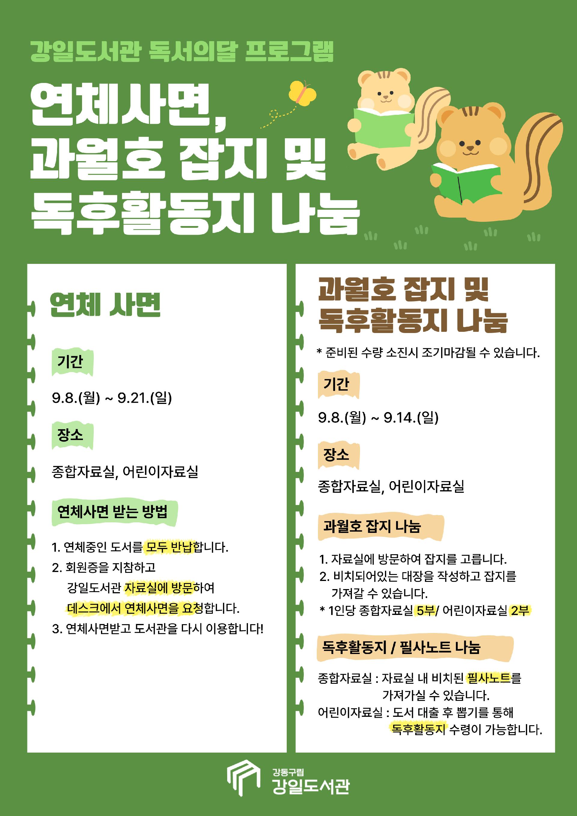 [안내] 강일도서관 2025 독서의 달 연체자 사면 및 과월호 잡지 나눔 안내