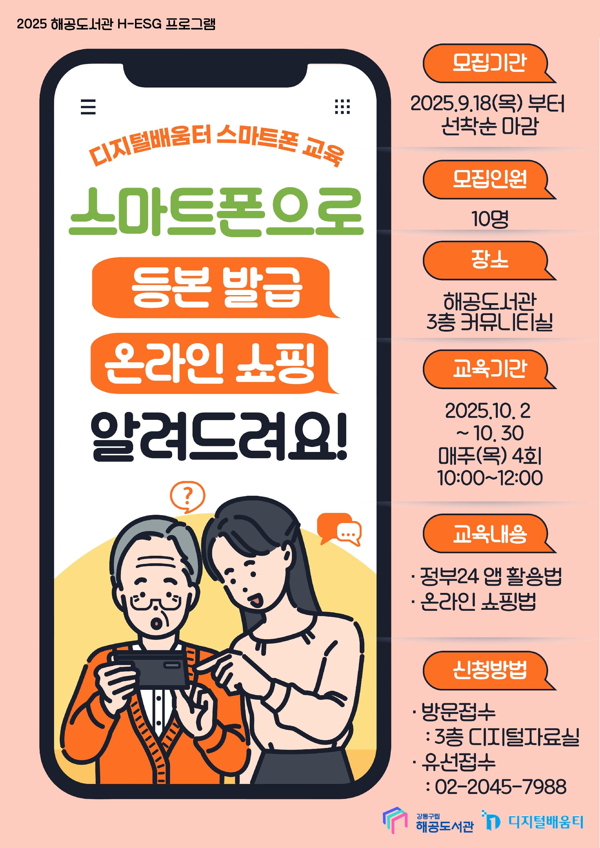 H-ESG : 디지털배움터 스마트폰 교육 - 스마트폰으로 행정서비스 이용하기 알려드려요!
