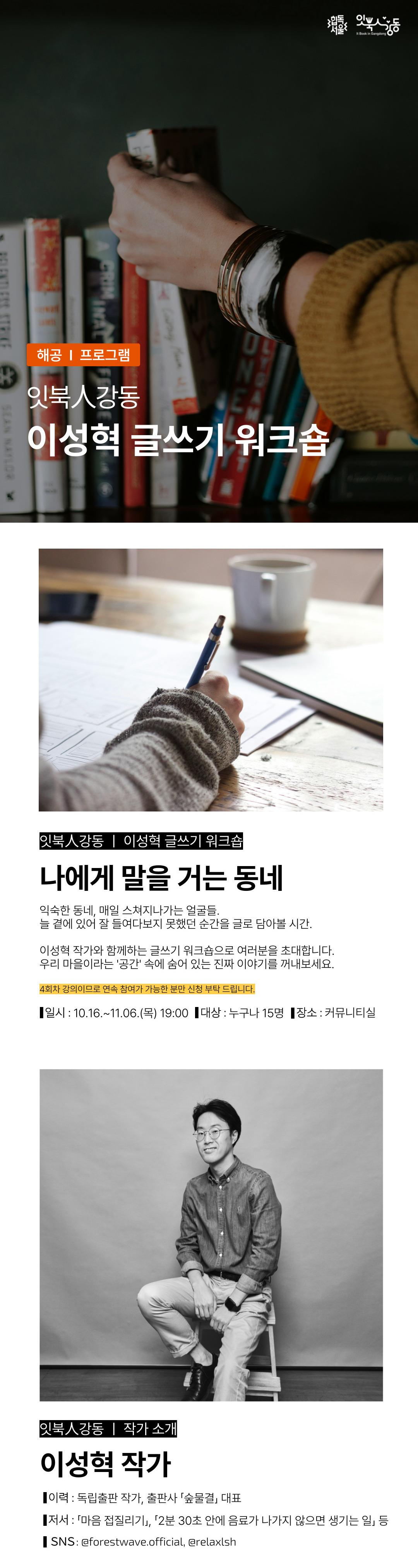 [잇북人강동] 글쓰기 워크숍 : 나에게 말을 거는 동네