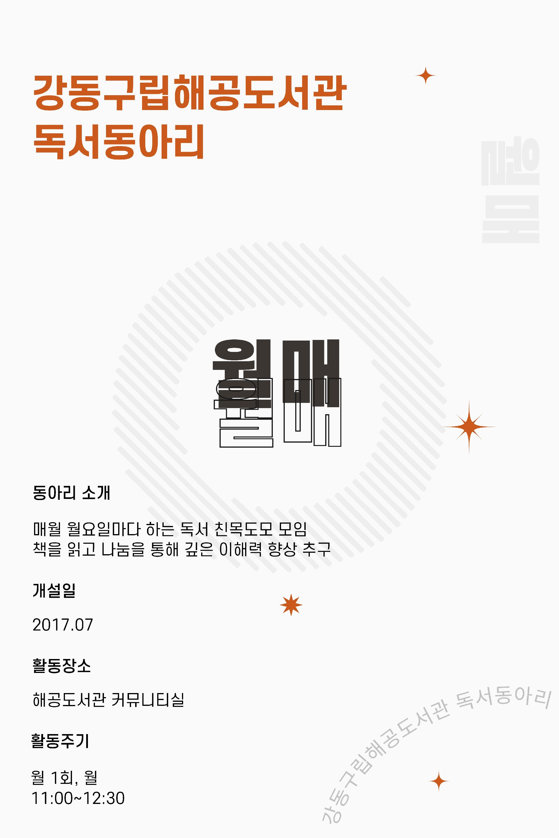 독서동아리 신규회원 모집은 별도 안내를 통해 진행됩니다.