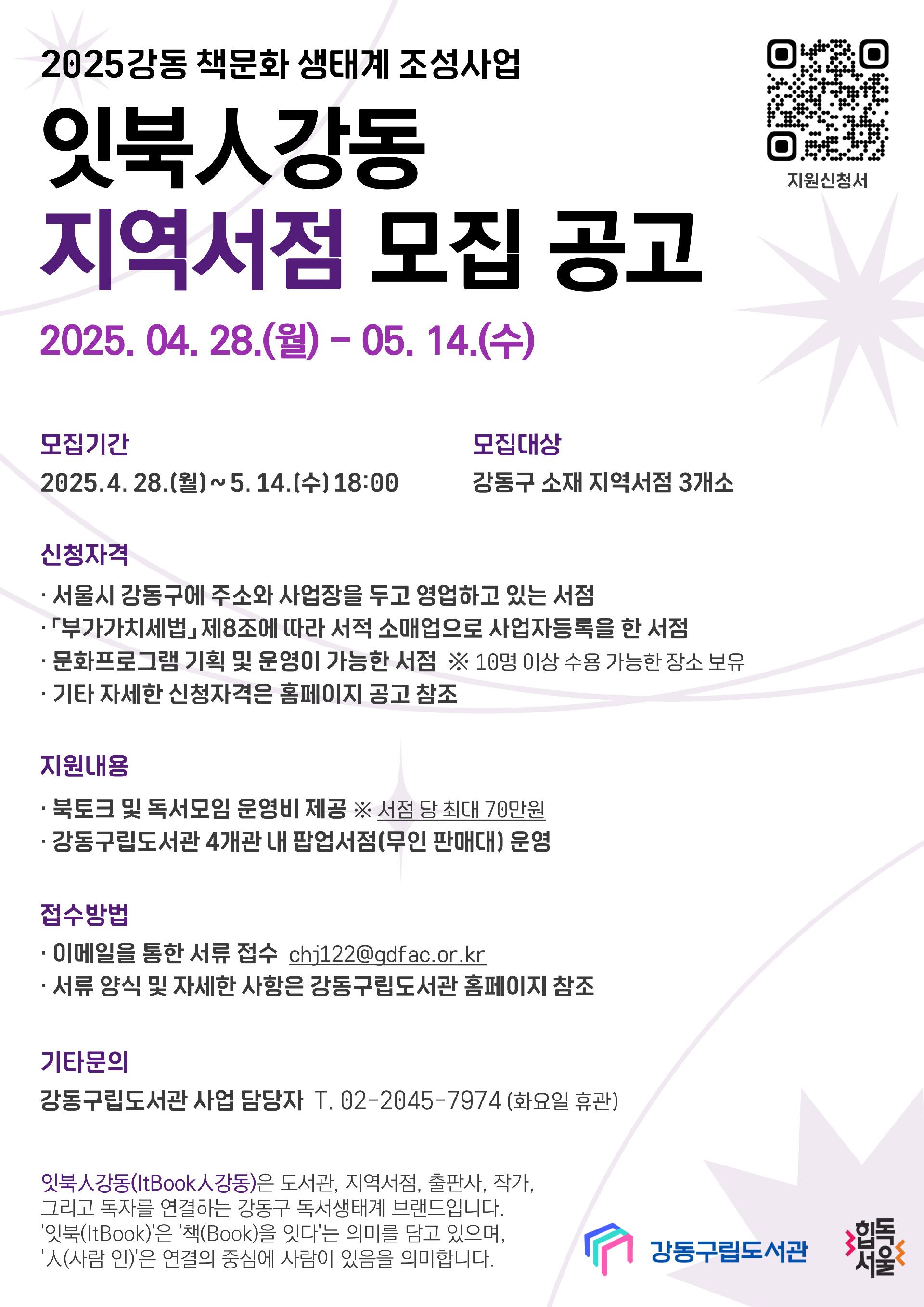 강동 책문화 생태계 조성사업 「잇북人강동」 지역서점 모집공고