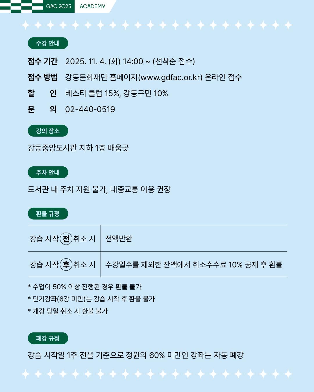 해당 프로그램은 강동문화재단 홈페이지에서 신청가능합니다.