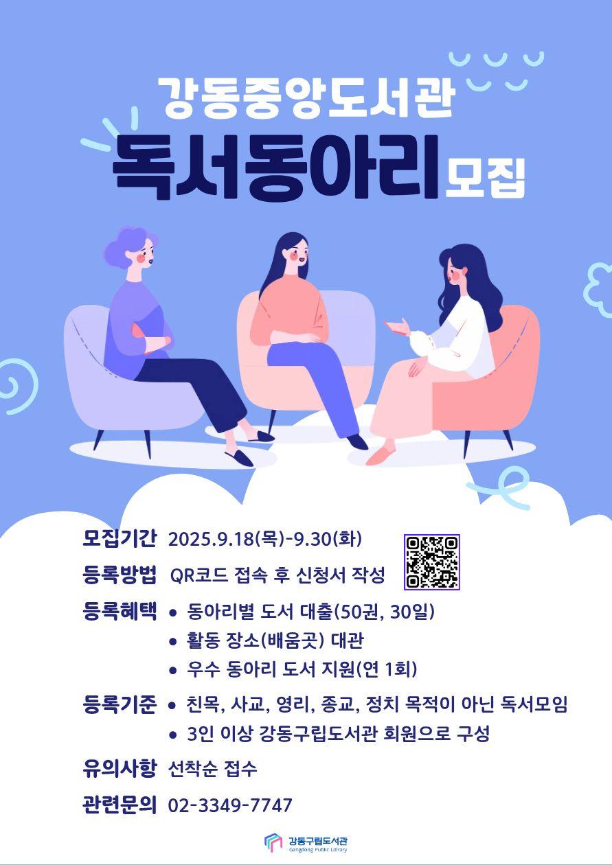 강동중앙도서관에서 독서동아리를 모집하오니 많은 관심 바랍니다.