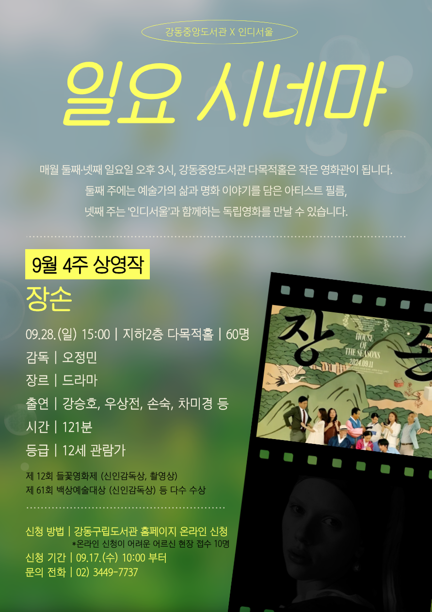 강동중앙도서관 9월 「일요 시네마: 장손」 프로그램 안내