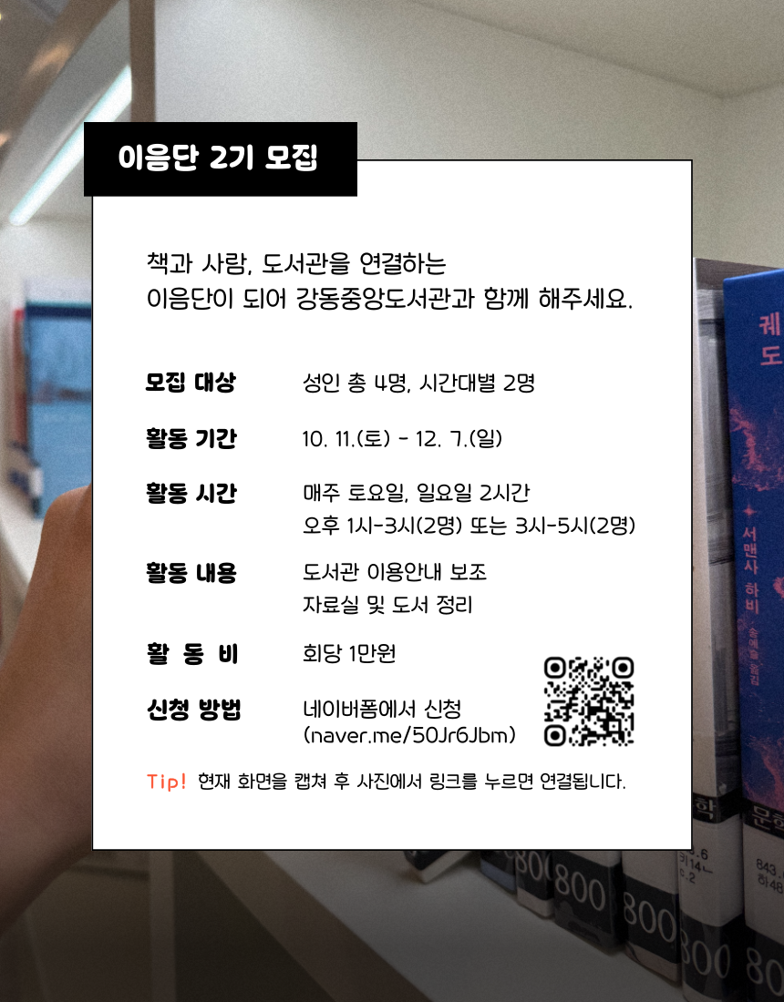 책과 사람, 도서관을 잇는 이음단이 되어 강동중앙도서관과 함께 해주세요!