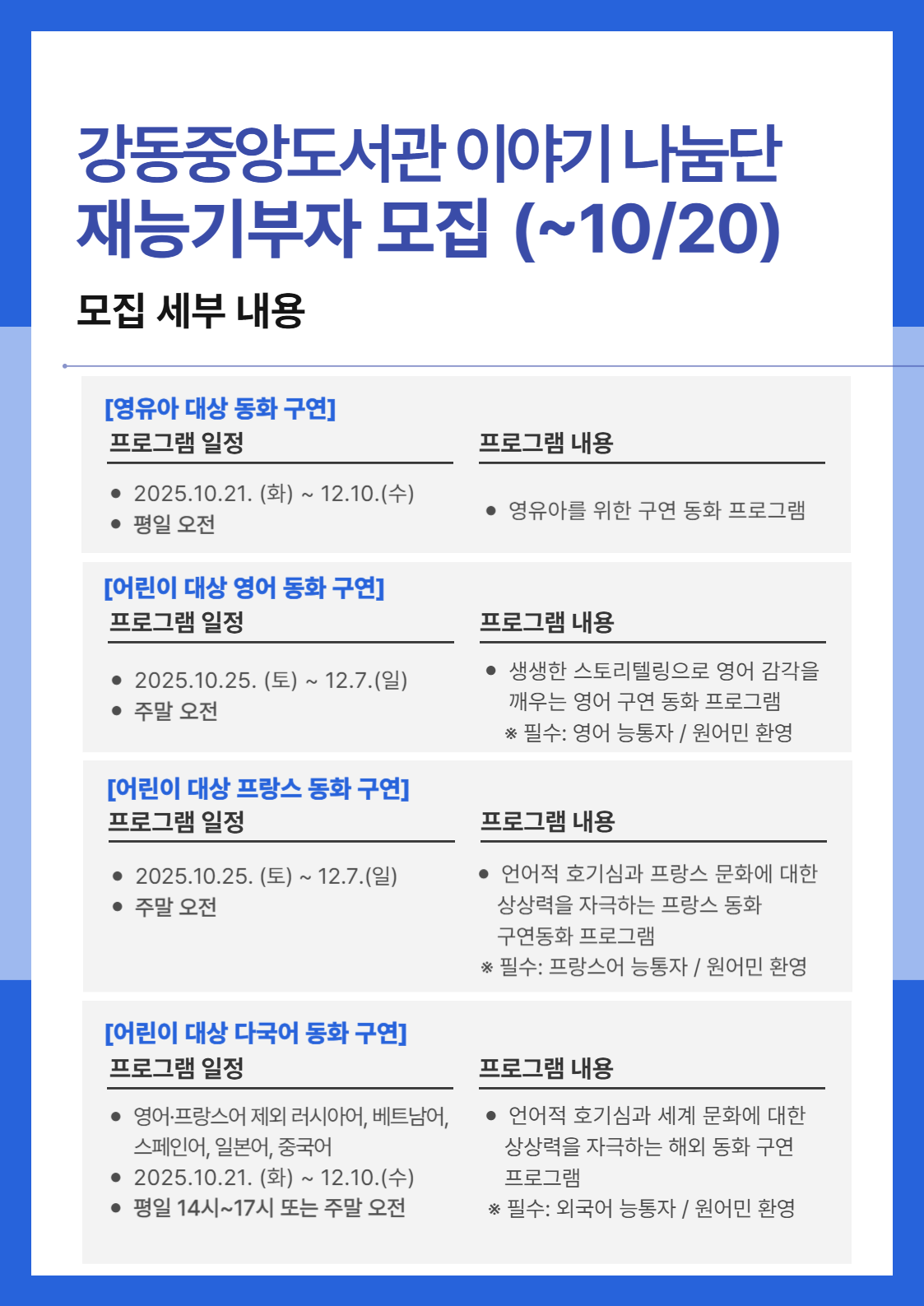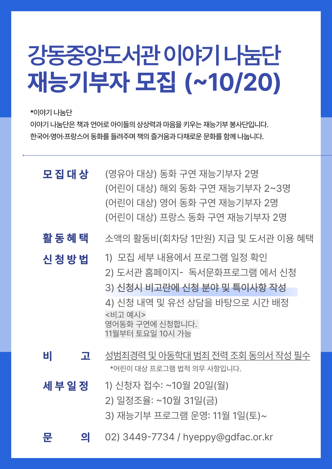 [모집] 강동중앙도서관 재능기부자 모집