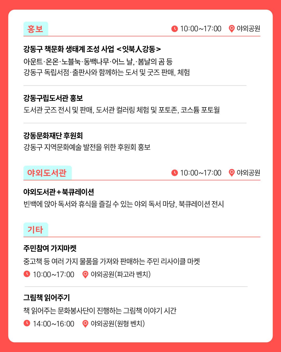 [제16회 강동북페스티벌] 세부 행사 안내