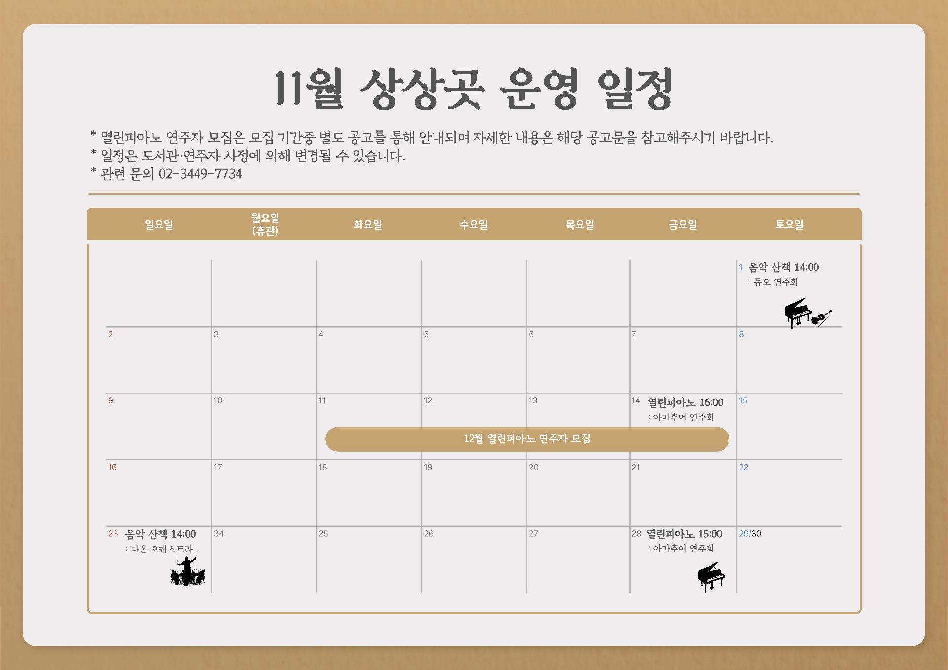 *열린피아노 연주자 모집은 11월 11일 별도 공지 예정입니다.
