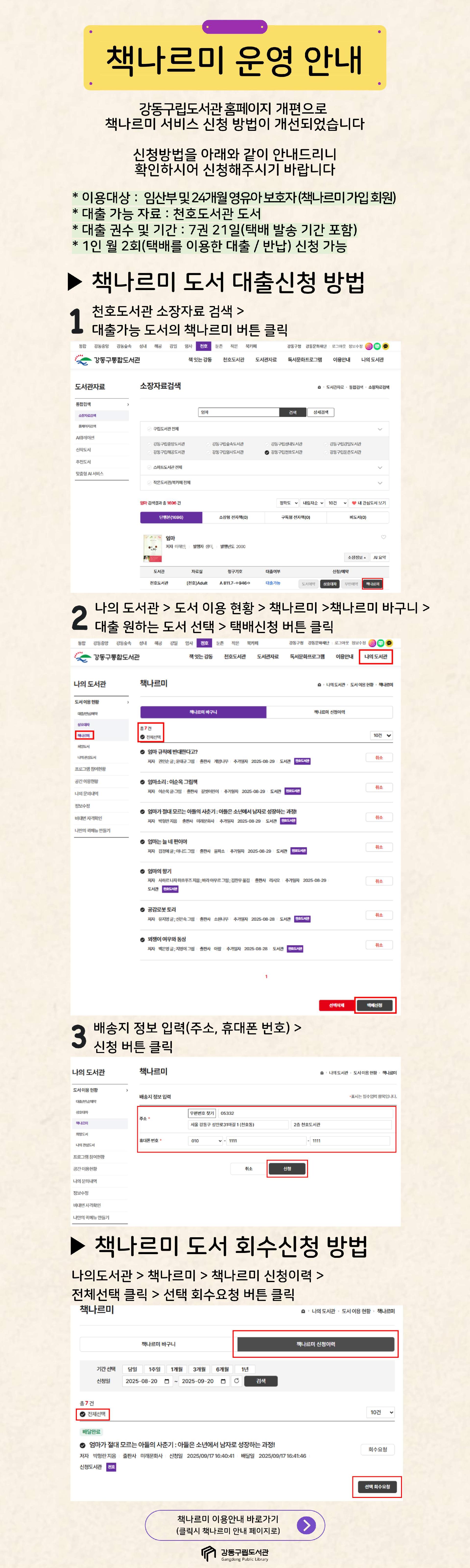 임산부 도서 대출 택배 서비스 책나르미 운영 재개 안내