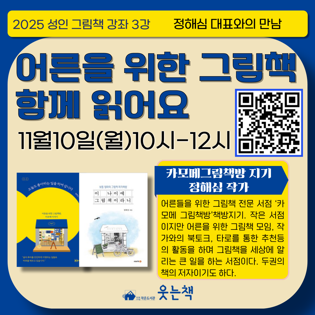 성인 그림책 강좌 세번째는 카모메 그림책방 정해심 대표와의 만남입니다.