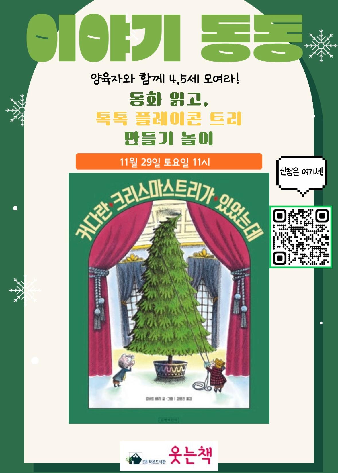 4세, 5세 친구들을 위한 11월 이야기동동에 신청하세요(양육자와 함께 진행되는 프로그램입니다)