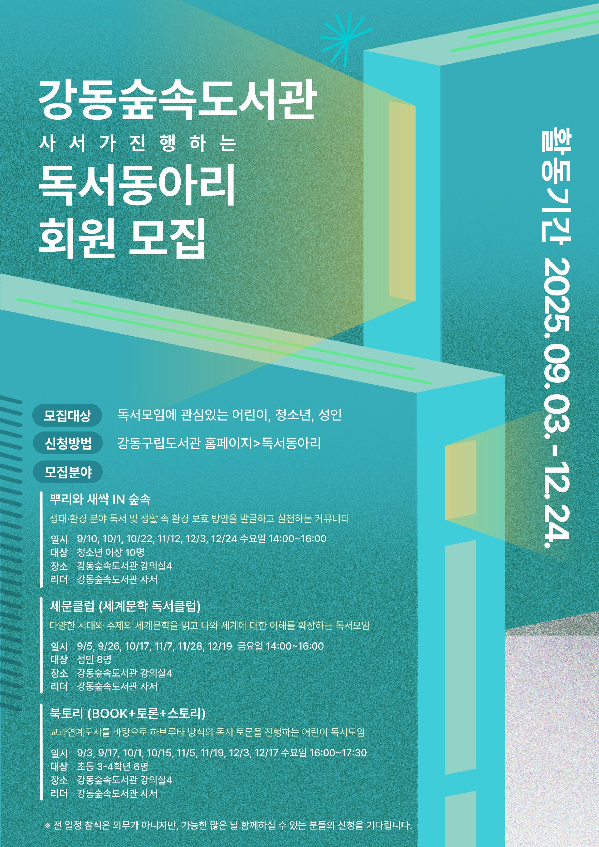 강동숲속도서관 2025년 독서 동아리 및 회원 모집