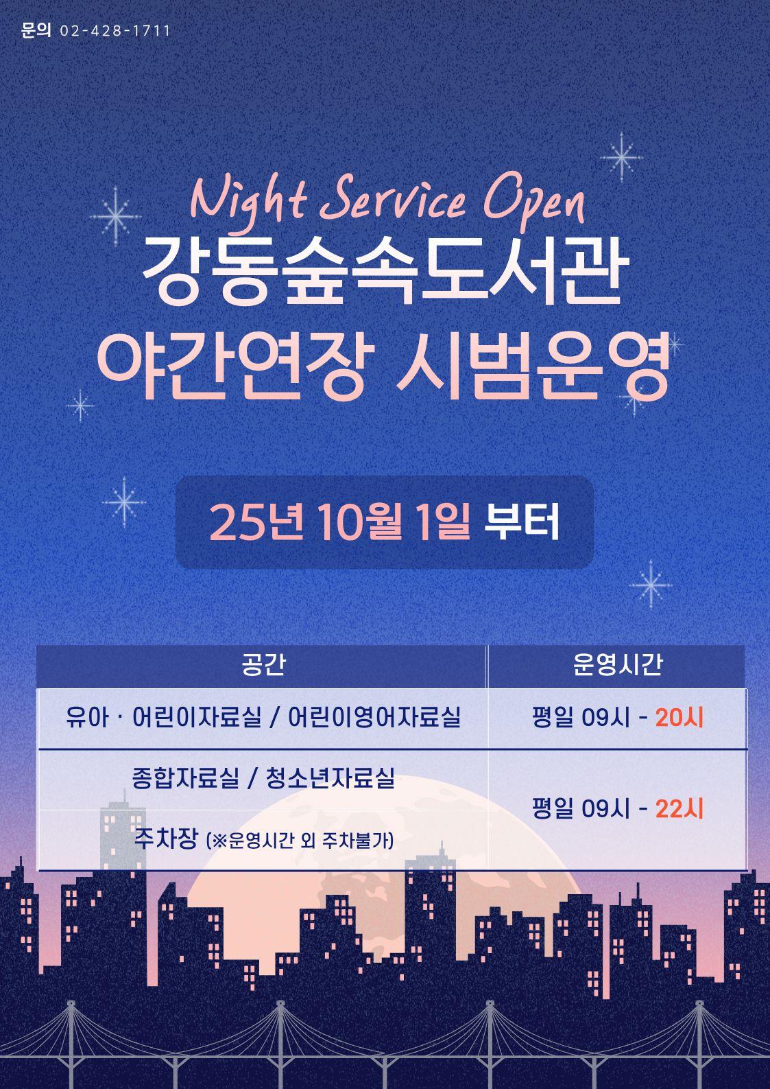 강동숲속도서관 야간연장 시범운영 안내