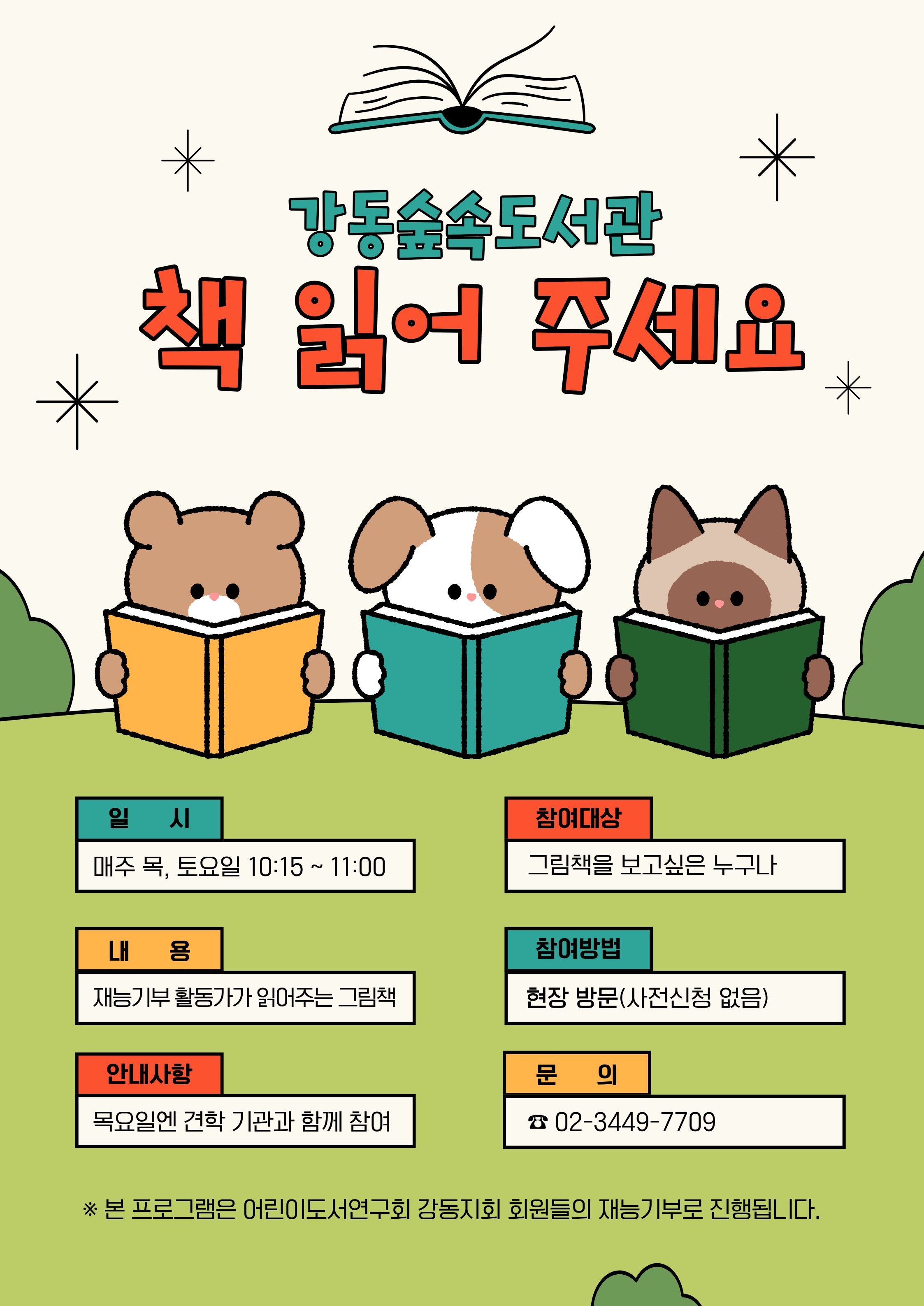 ※ 책 읽어 주세요 프로그램은 여름방학(7월~8월) 기간은 쉬어갑니다.