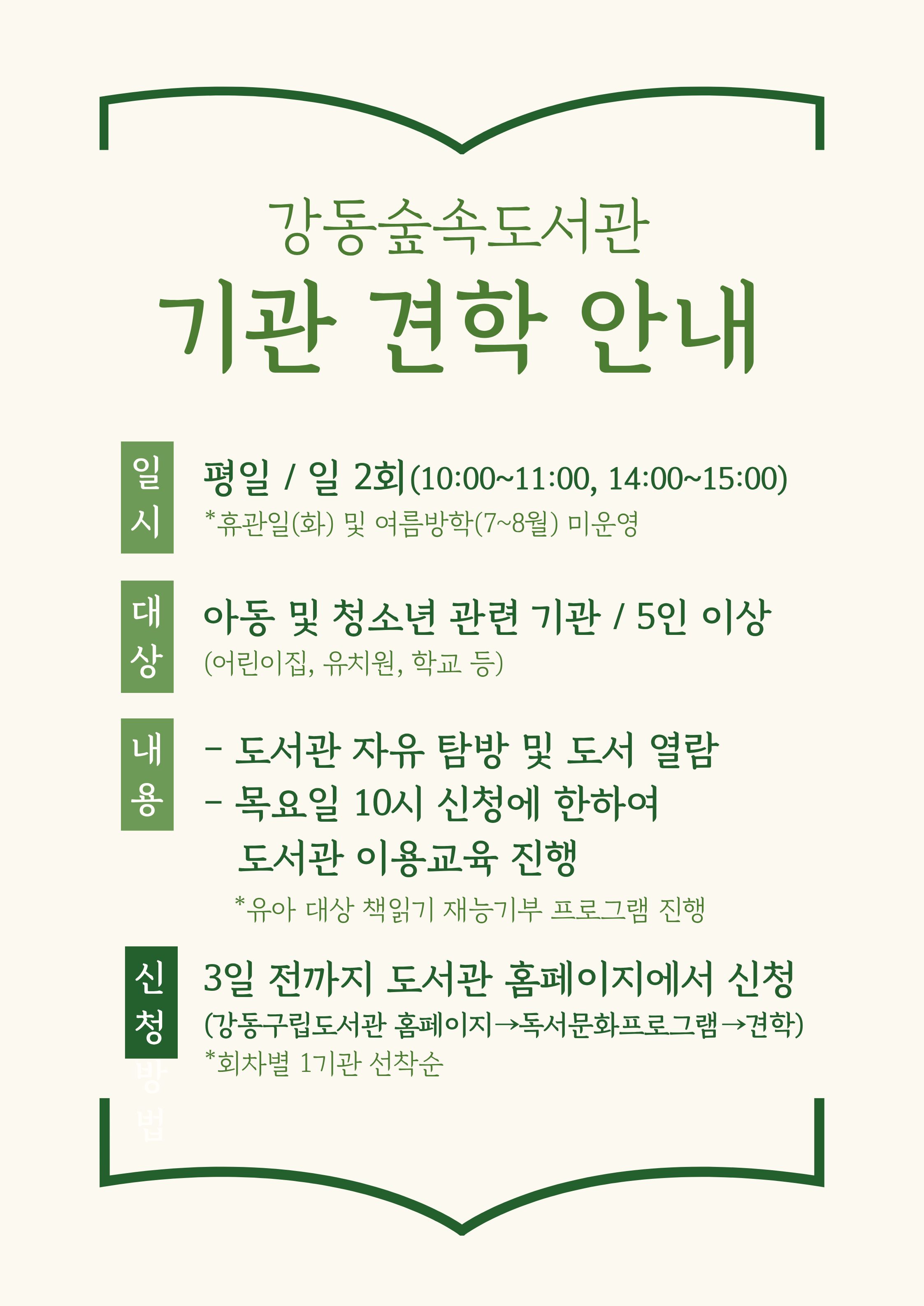 [행사] 강동숲속도서관 기관 견학 및 프로그램 <책 읽어 주세요> 안내